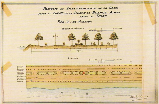 Con un plazo de obra estimado en tres años, se propuso una ancha avenida que comunicaba con el Tigre, recorriendo la parte más pintoresca de la costa. A su vez, la comuna porteña debía construir una avenida ribereña que, arrancando de Puerto Nuevo, se prolongase hasta la Estación Rivadavia en el límite del distrito, donde se empalmaría con la que proyectaba la Comisión.