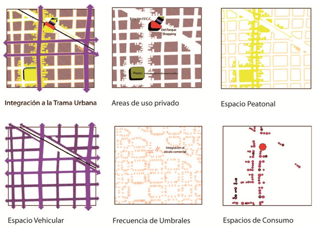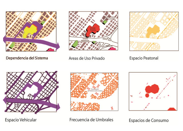 Ámbitos contenedores: Mientras que los centros tradicionales son utilizados por los sectores bajos de la sociedad, estructurados a partir de la continuidad que ofrece el transporte público y de “la calle” como ámbito de integración, los sectores medios y altos se apropian de las nuevas centralidades, a partir de un espacio de carácter privado que funciona como soporte colectivo de las prácticas sociales.
